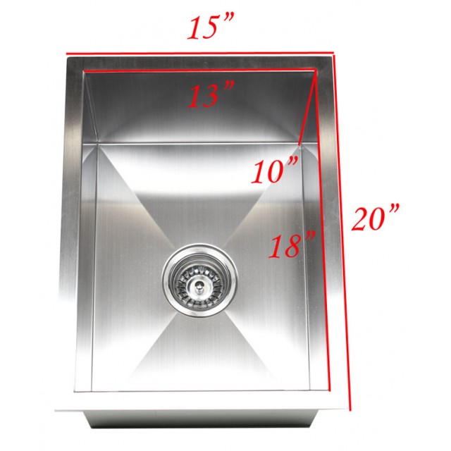 15 Inch Stainless Steel Undermount Single Bowl Kitchen / Bar / Prep Sink Zero Radius Design