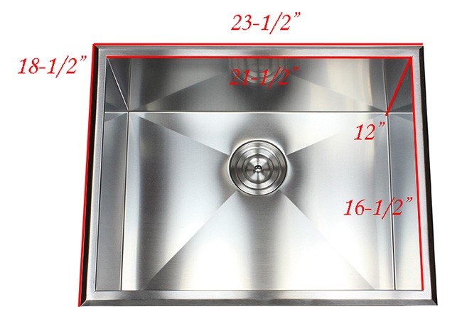 23 Inch Drop-In Stainless Steel Single Bowl Kitchen / Utility / Laundry Sink Zero Radius Design