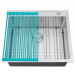| Includes | Kitchen Stainless Steel Sink, Matching Protective Grid, Deluxe Lift-Out Basket Strainer, Pot Mat (color may vary), Silicone Dish Rack (color may vary), Cut-Out Template, Mounting Hardware |