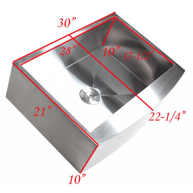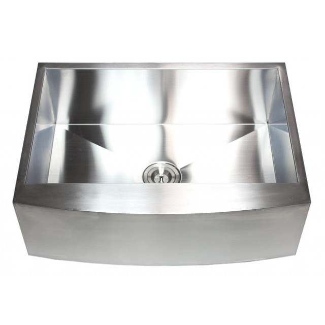 30 Inch Stainless Steel Single Bowl Curved Front Farm Apron Kitchen Sink Zero Radius Design