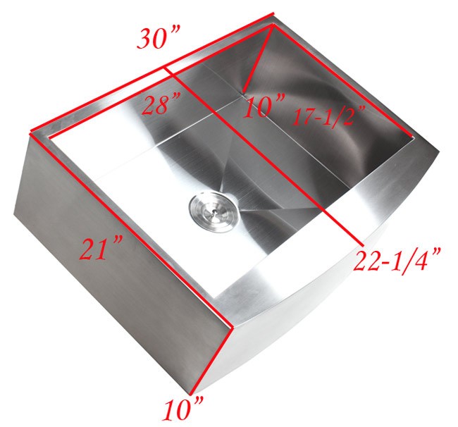 | Dimensions | 30" x 21" (Overall Exterior) 28" x 17-1/2" (Interior) 10" (Bowl Depth) 10" (Apron Depth) |