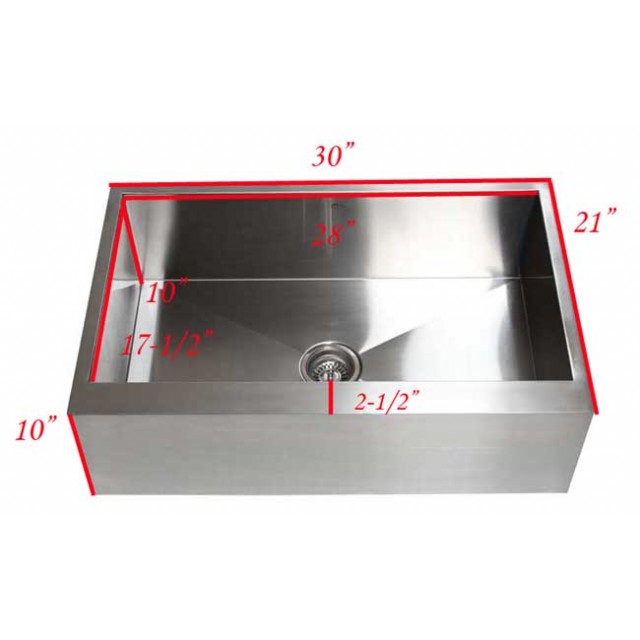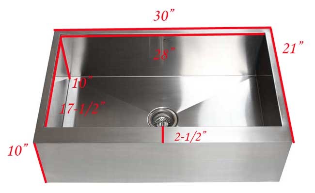 | Dimensions | 30" x 21" (Overall Exterior) 28" x 17-1/2" (Interior) 10" (Bowl Depth) 10" (Apron Depth) |
