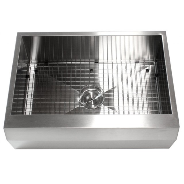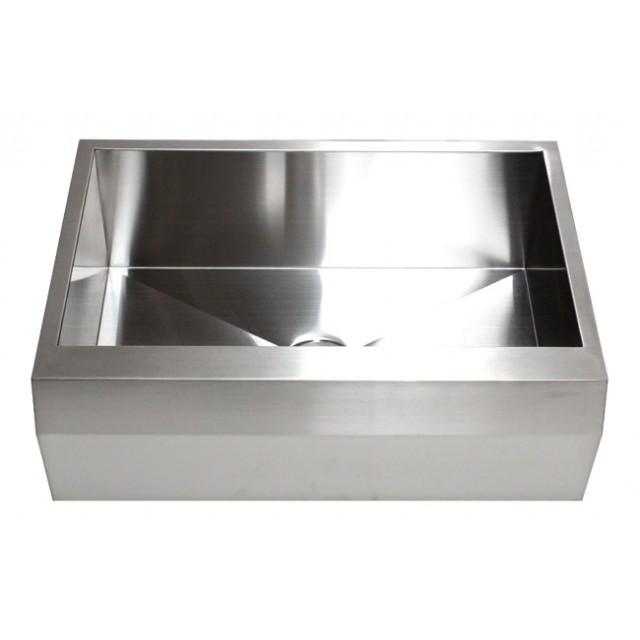 The 30 inch apron sink features zero radius corners and a sleek angled front. This spacious farmhouse sink blends traditional style with modern thinking. Dimensions 30" x 22" x 10"