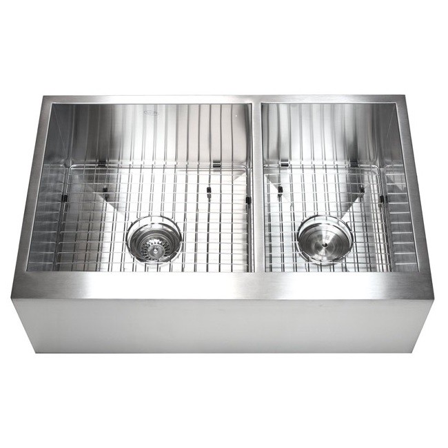 33 Inch Stainless Steel 60/40 Double Bowl Flat Front Farm Apron Kitchen Sink