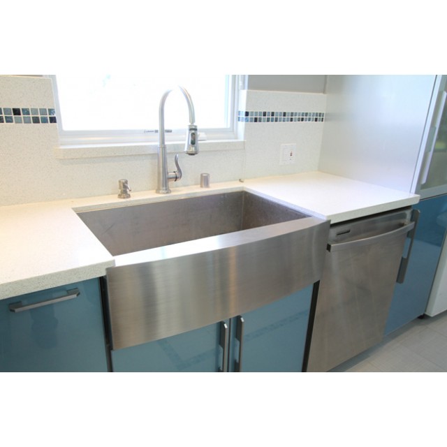 This Farmhouse Apron Front kitchen sink is finished on the side and back, so there are 3 (three) different ways to install this sink - Undermount (Under-Counter), Flush-Mount, and Built-Up: