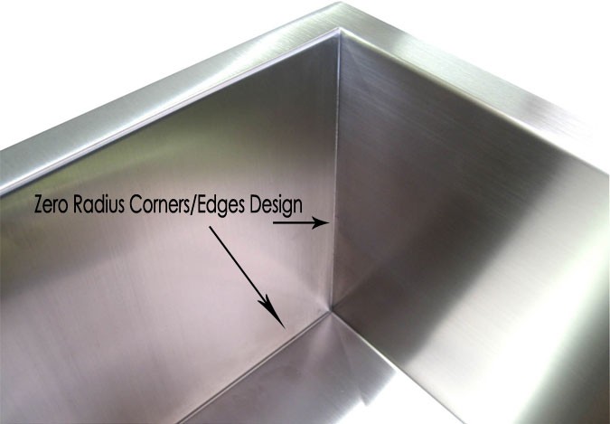 Understanding the differences between Zero Radius Design and Regular Design is important; due to the fact that Zero Radius sinks are perfectly rectangular, they have no curves and the bowls do not slope down, the bottom and the sides of the sinks are completely flat, giving them a much larger usable bowl area than regular design kitchen sinks. Heavy duty kitchen is never a problem because you can stack as many dishes and utensils as you want. As a result, Zero Radius Design kitchen sinks are not only offering modern appearance to your kitchen decor, but also provide you practical uses.