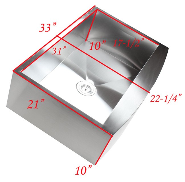 | Dimensions | 33" x 21" (Exterior) 31" x 17-1/2" (Interior) 10" (Bowl Depth) 10" (Apron Depth) |