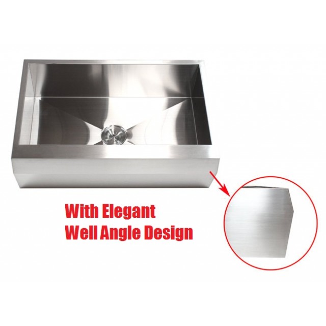 33 Inch Stainless Steel Single Bowl Zero Radius Well Angled Design Farm Apron Kitchen Sink 16 Gauge