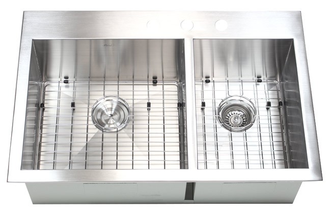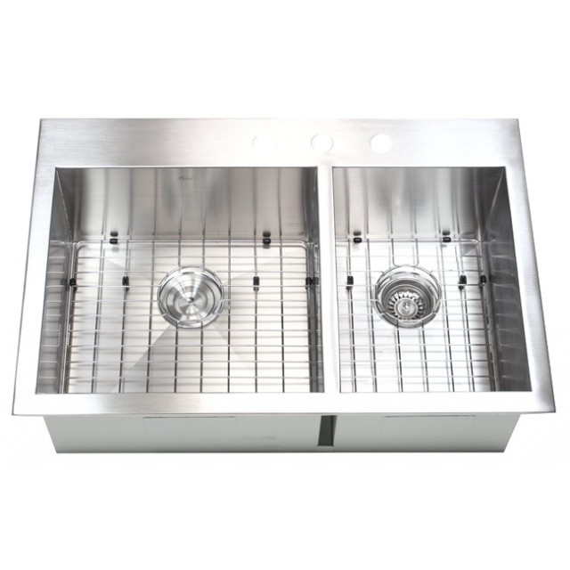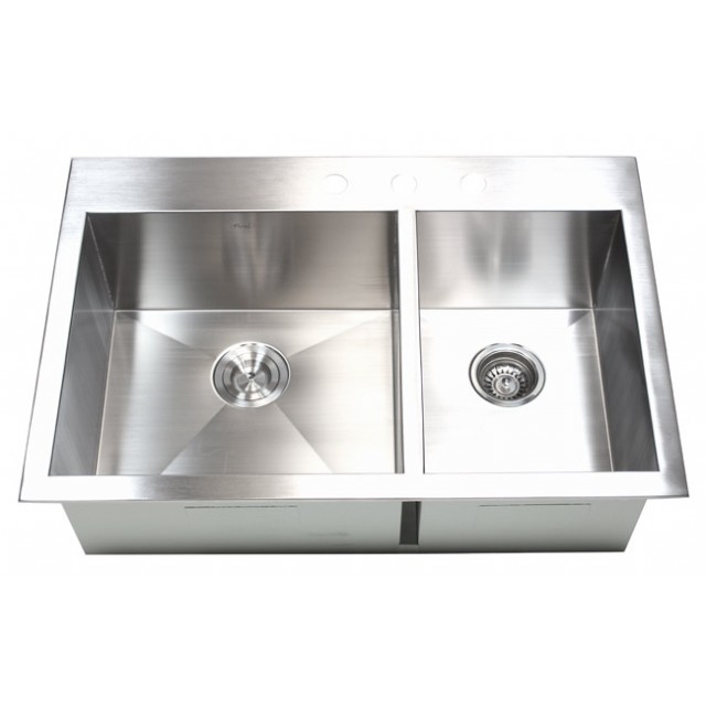 33 Inch Top-Mount / Drop-In Stainless Steel 60/40 Double Bowl Kitchen Sink Zero Radius Design