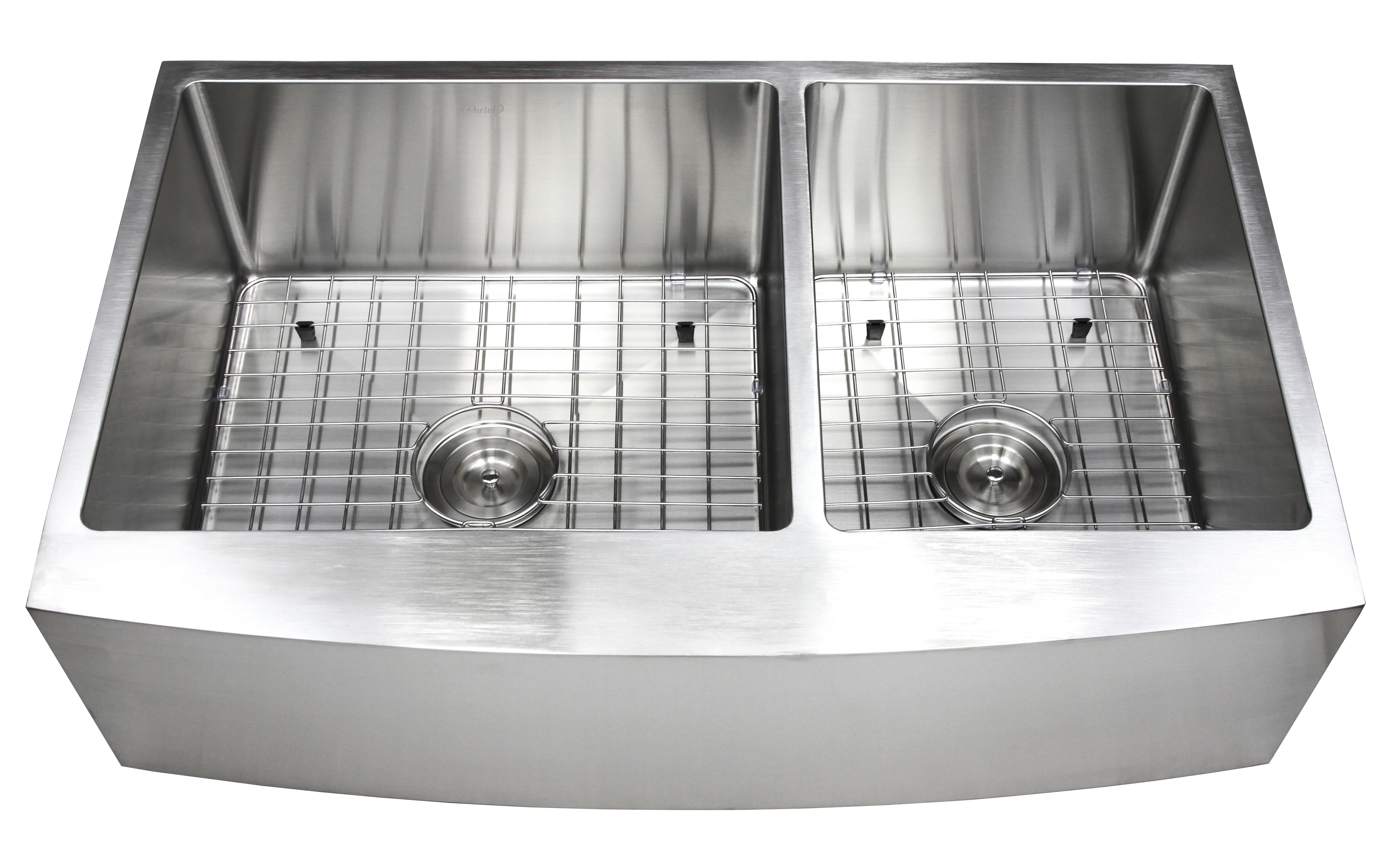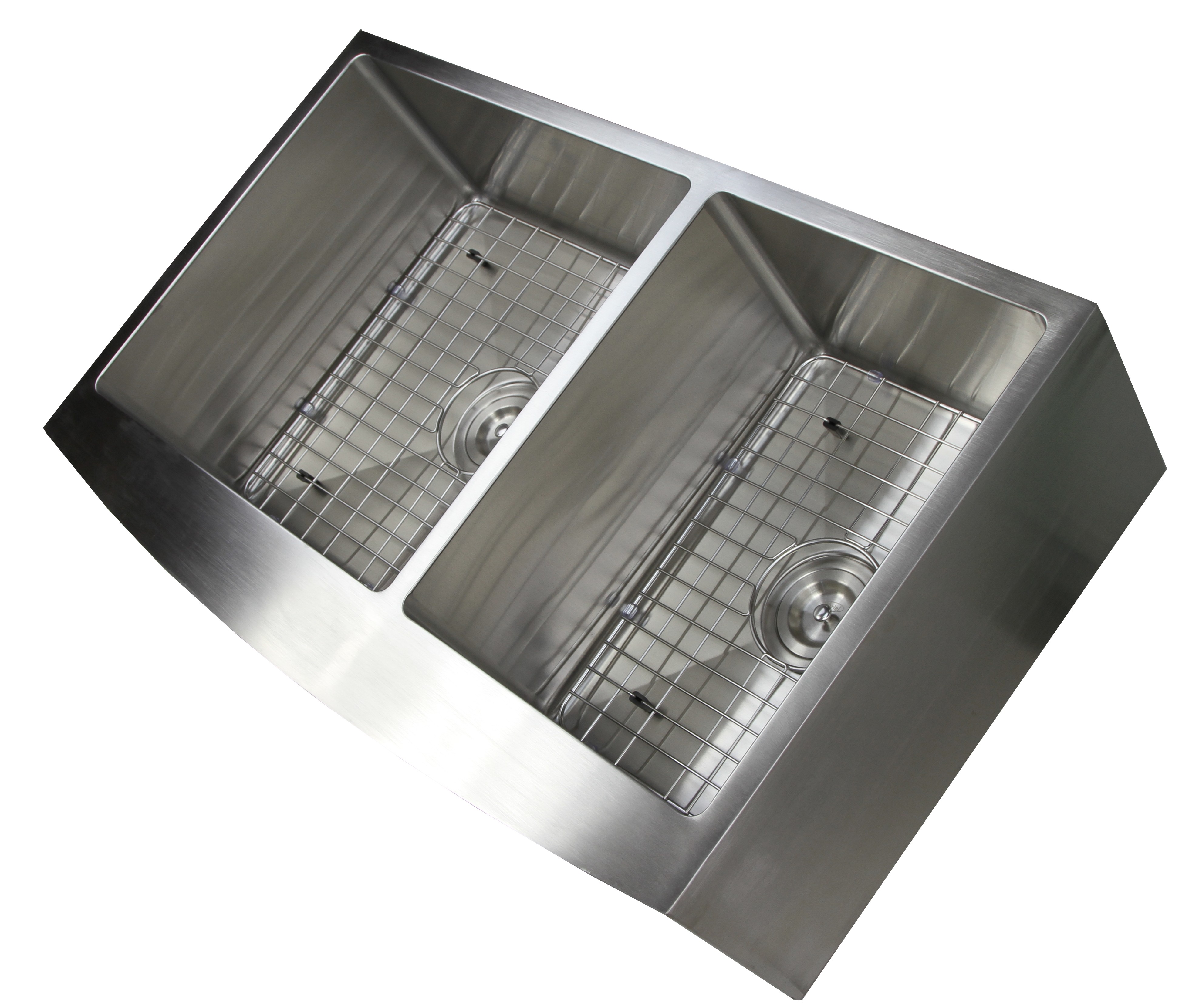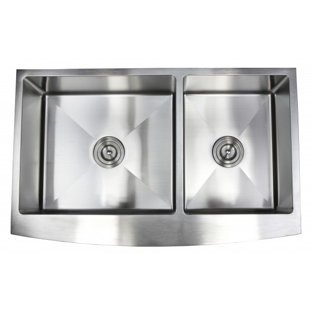 36 Inch Stainless Steel Curved Front Farm Apron 60/40 Double Bowl Kitchen Sink 15mm Radius Design - 16 Gauge