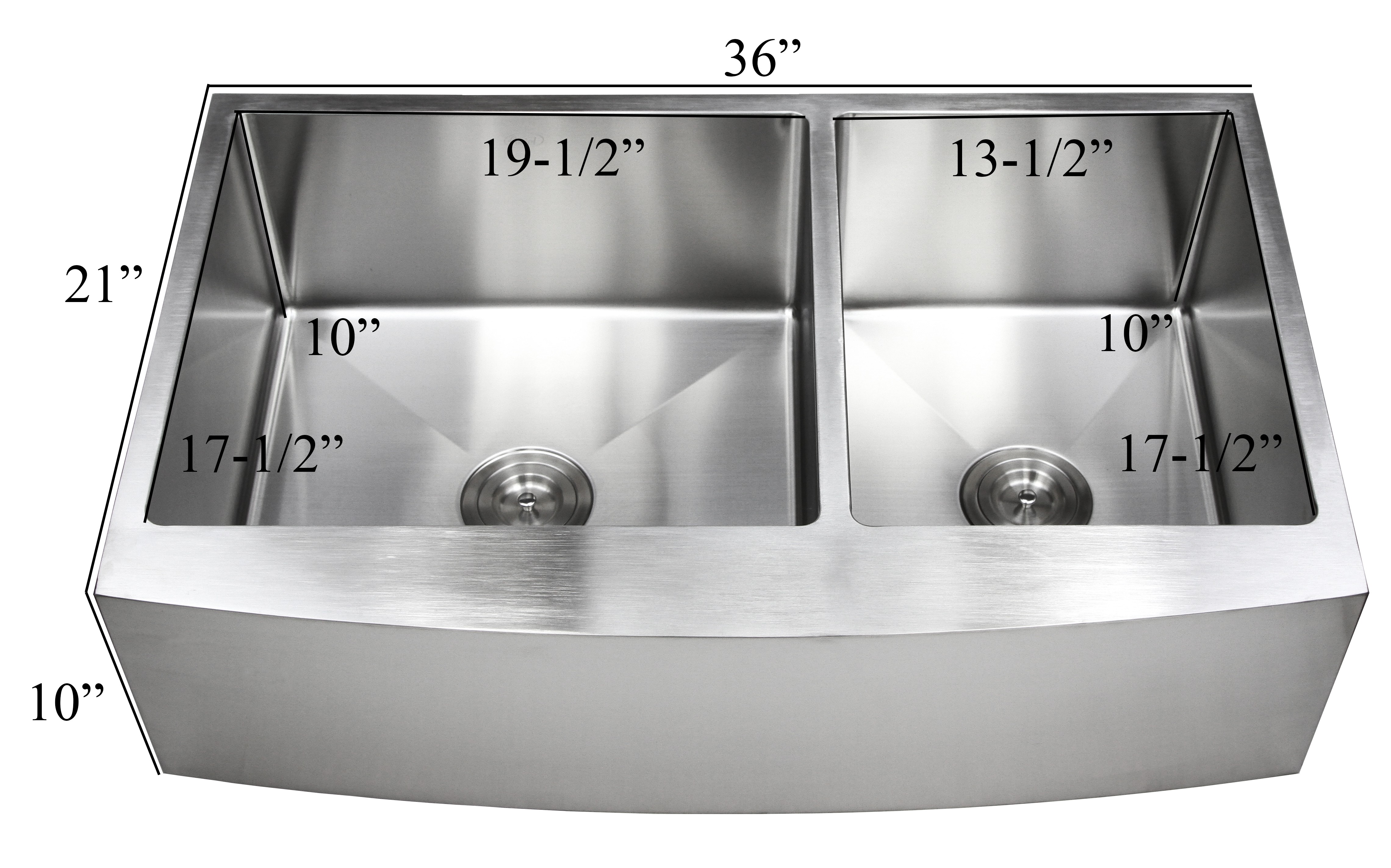 Exterior Dimensions 35-7/8" x 20-3/4". Left Bowl Interior 19" x 16". Right Bowl Interior 13" x 16". Bowl Depth 10".