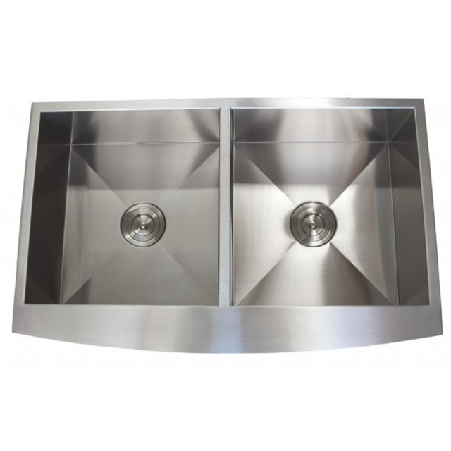 Apron front sinks are often referred to as farmhouse sinks because they can evoke period-style kitchens. These sinks have a stylish panel in front that are either curved or flat front. Their unique brushed stainless steel finishes will match any kind of kitchen decor and appliances. Over the years, they became the most popular choices in contemporary kitchen design. We carry the largest inventory of stainless steel apron front sinks, come checkout our other models!