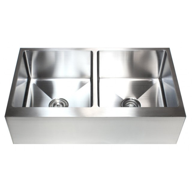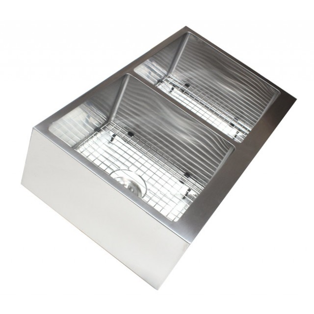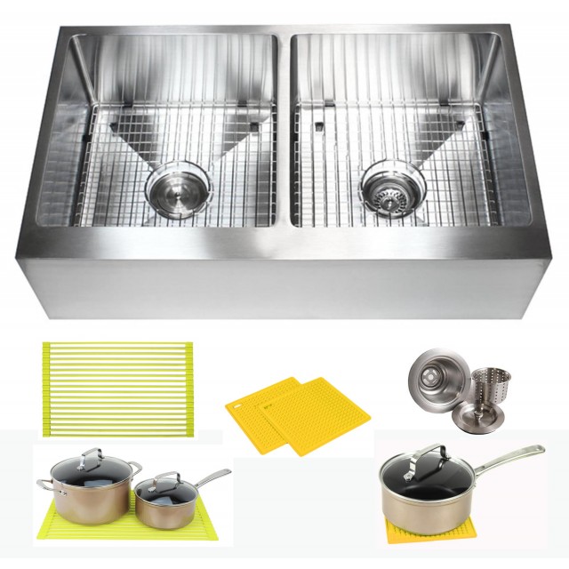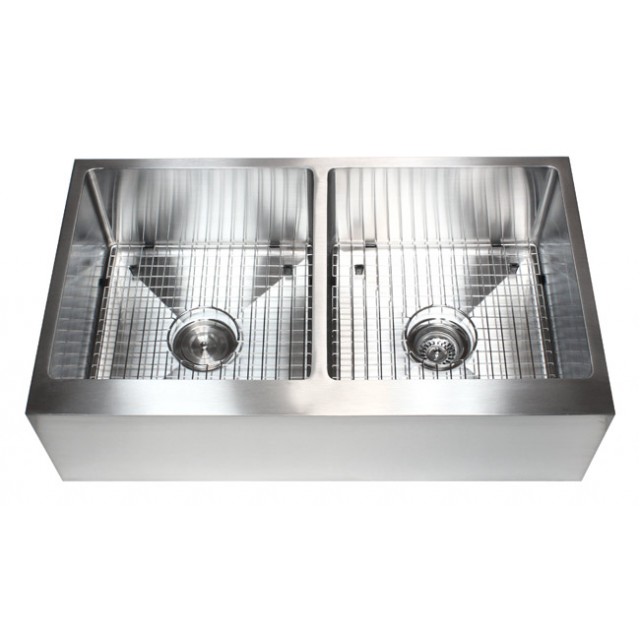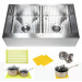 36 Inch Stainless Steel Flat Front Farm Apron 50/50 Double Bowl Stainless Steel Kitchen Sink Premium Package 15mm Radius Design