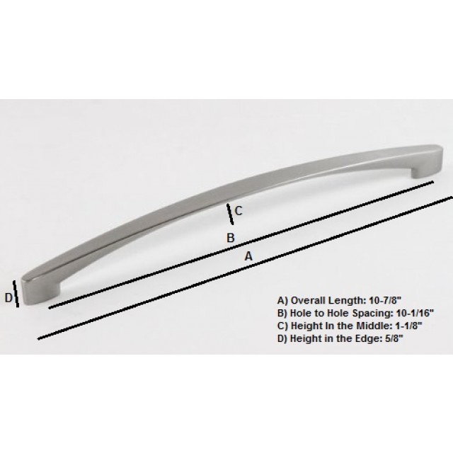 100% Real Solid Zinc Alloy 10-7/8" Crescent Design Cabinet Handle Bar Pull. Offer a modern touch to any style of cabinetry. 1" Mounting screws included.