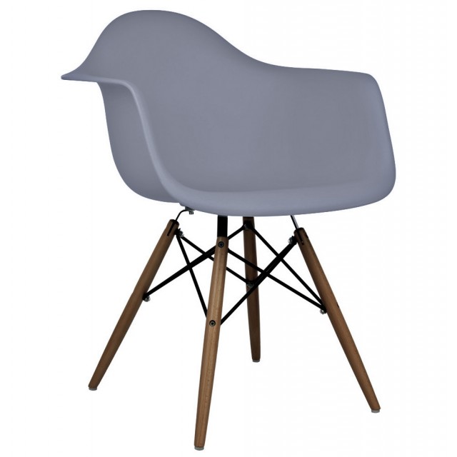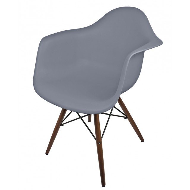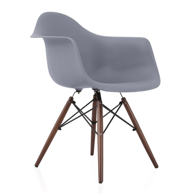 DAW Dark Gray Plastic Dining Armchair with Dark Walnut Wood Eiffel Legs