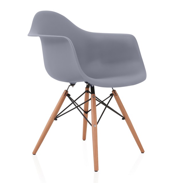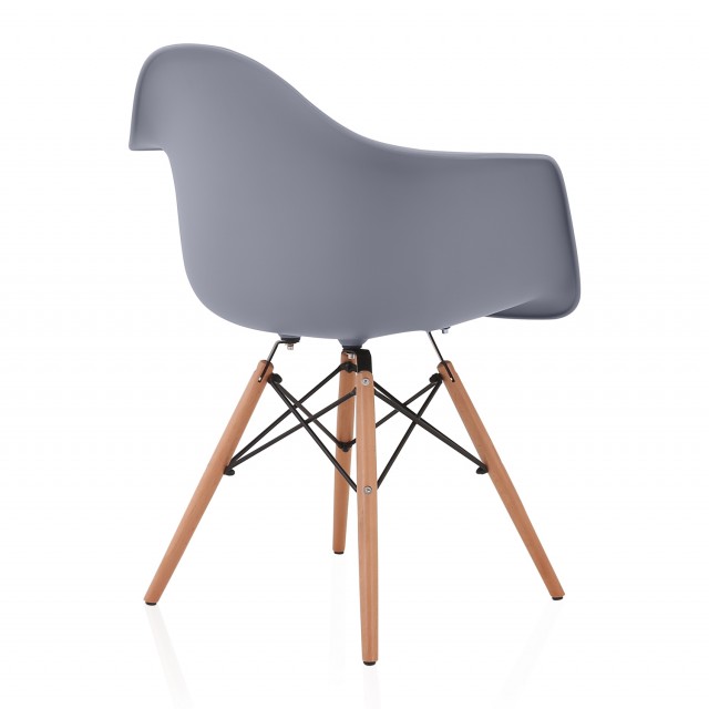 DAW Dark Gray Plastic Dining Armchair with Wood Eiffel Legs
