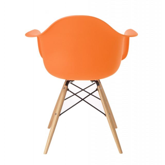 DAW Molded Orange Plastic Dining Armchair with Wood Eiffel Legs
