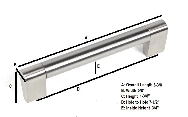 Empire 8-3/8 Inch (212 mm)Stainless Steel Finish Cabinet Bar Pull Handle with 7-1/2 Inch (190mm) Hole to Hole Spacing