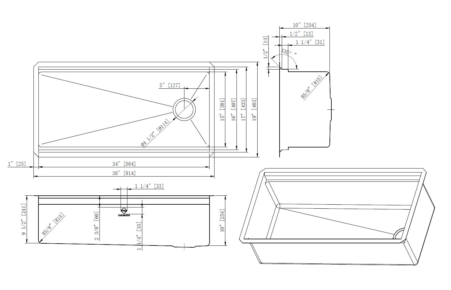 【CUTTING-EDGE DESIGN】Our most advanced drain hole design, offset to the side of the sink. Benefits: 1) Drain placement provides more usable space on the sink bowl, 2) Have more under cabinet space because the drain pipe and garbage disposal will not get in your way, 3) Gently sloped bottom, and double channel grooves that prevent water from pooling in the sink