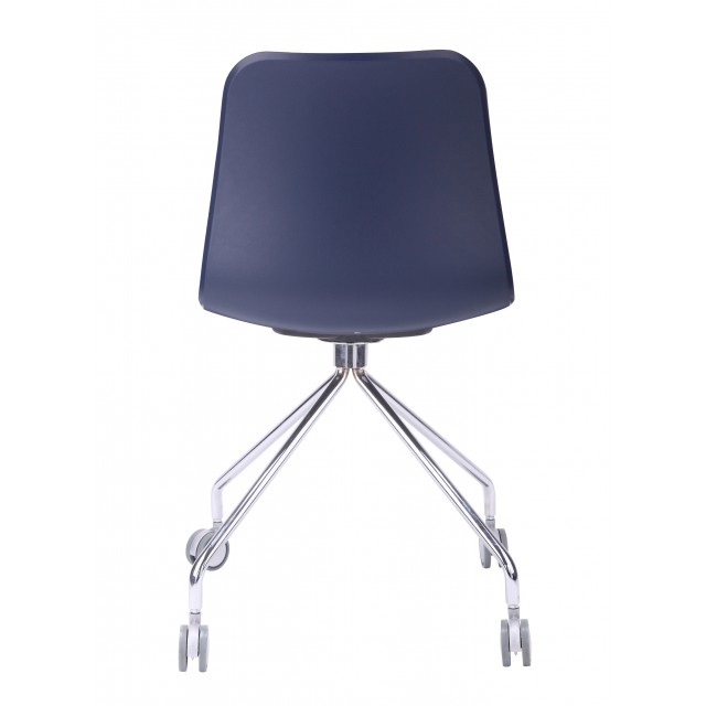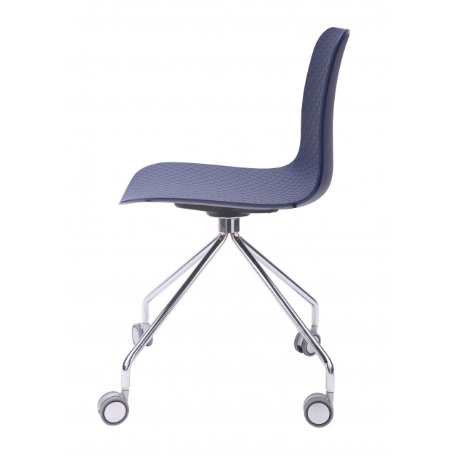 - Seat made of high grade polypropylene, in matte finish, formed in a single mold, and padded with cool geometric patterns; paired with simple yet minimalistic polished chrome 360-degree swivels wheel legs