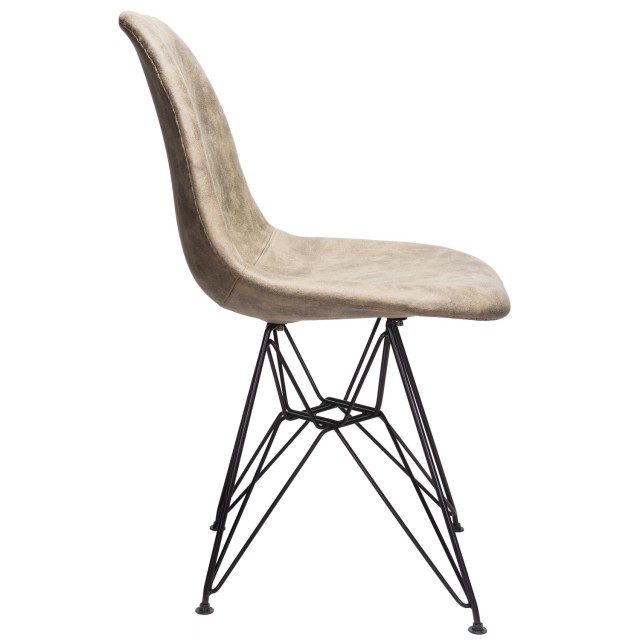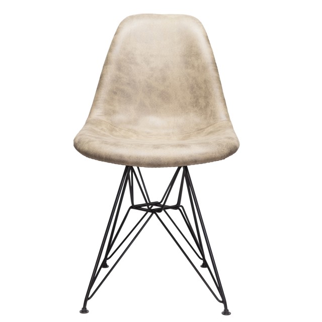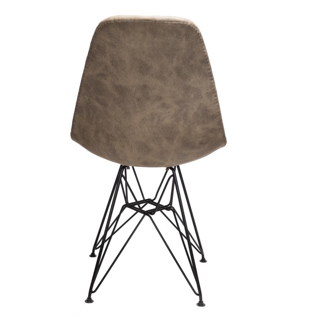 Markle Light Brown Leatherette Fabric Upholstered DSR Dining Side Accent Chair with Black Steel Leg