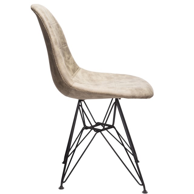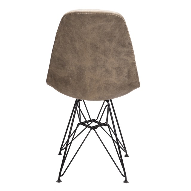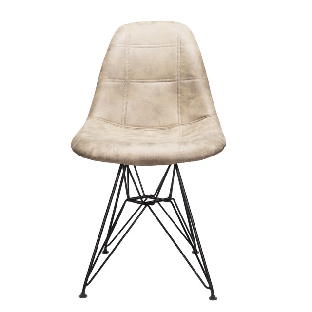 Moomin Checkerboard Light Brown Leatherette Fabric Upholstered DSR Dining Side Accent Chair with Black Steel Leg