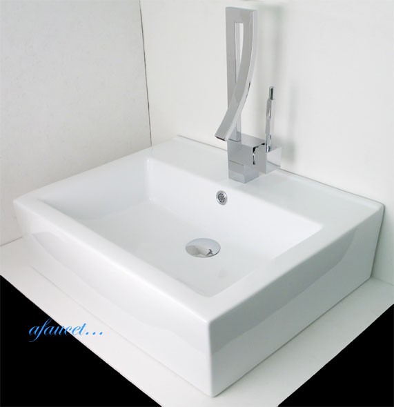 or wood counter top other than simple holes for the waste outlet and water inlets. - Hugh size for a more Contemporary look.