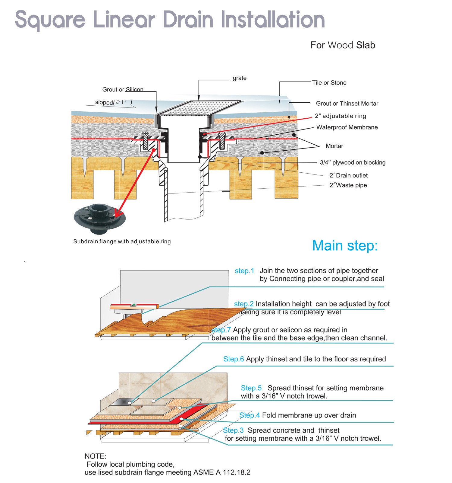 Concerned about materials? The Drain is constructed with series 304 stainless steel, to ensure it is as corrosive and rust resistant as possible