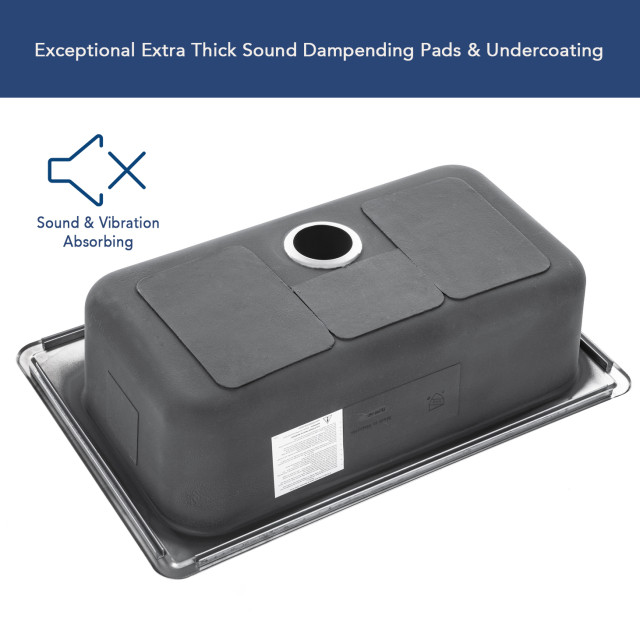[Advanced Designed] Each sink is manufactured with an excellent sound-deadening system that absorbs and reduces the noise made by garbage disposal and running water, and the top mount design allows the sink have ability to retrofit most existing cabinet.
