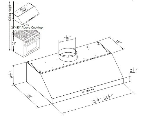 | Dimensions | 29-1/2" x 22" x 9-4/5" (W x L x H) 8" Diameter (Round Duct Vent) |