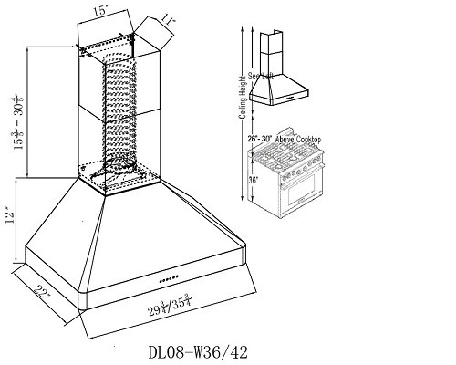XtremeAIR 36 Inch Wall Mount Stainless Steel Range Hood DL08-W36